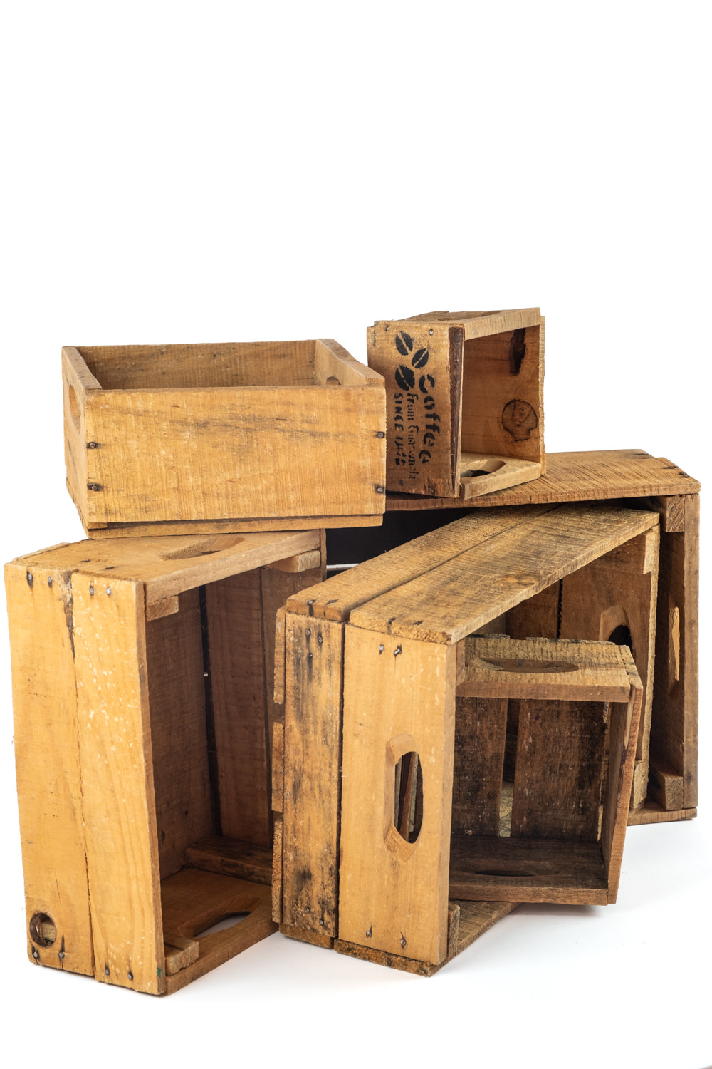 Multifunkční dřevěné bedýnky mají nespočet variant pro využití, dají se různě otáčet a využít jako stolečky, poličky či bedýnky v pravém slova smyslu. Slouží k organizaci i dekoraci, výborně korespondují k přírodním typům svateb a eventů.