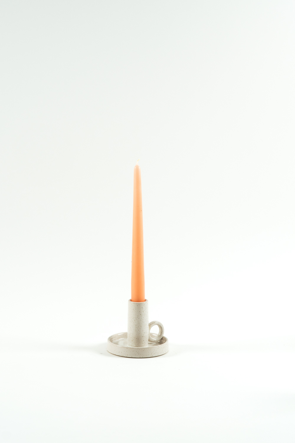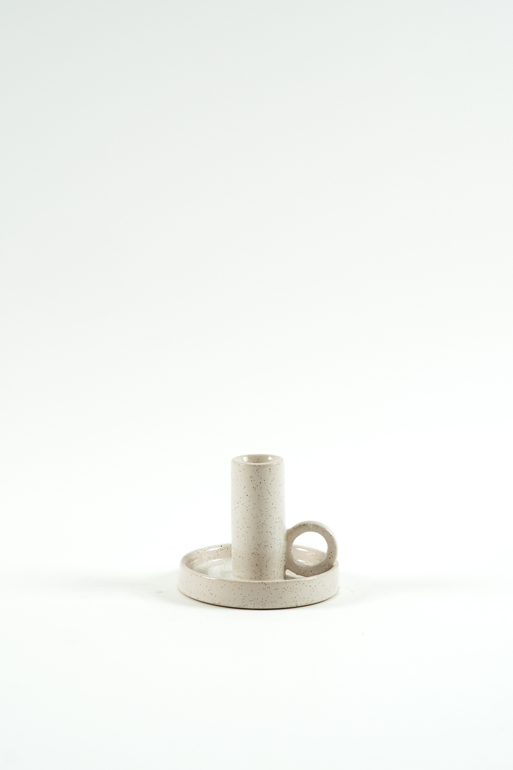 Keramický svícen na kónickou svíčku s ouškem - bílý/béžový - 8,5 cm