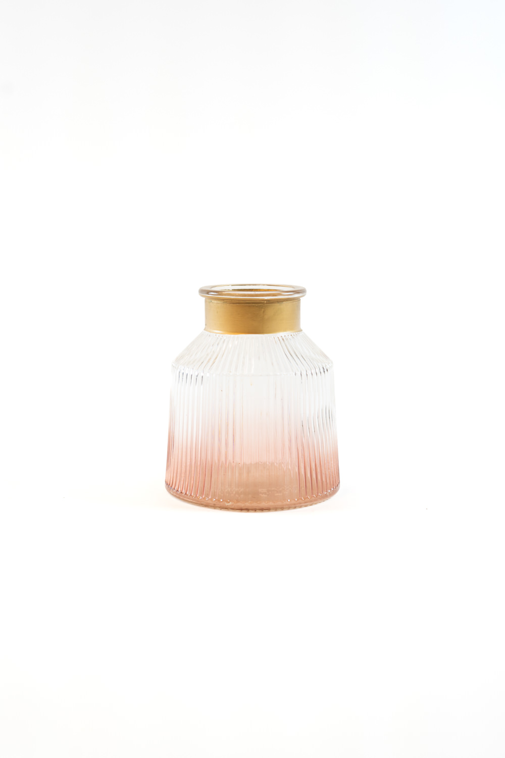 Tato sofistikovaná váza s kombinací čirého skla a zlatých detailů je perfektní volbou pro slavnostní květinové vazby, jako jsou například kytice pro maminku nebo poděkování pro svědkyni. Růžové dno a zlaté hrdlo dodávají luxusní nádech, zatímco čirý střed zachovává lehkost a eleganci. Díky své univerzálnosti se skvěle hodí pro jemné i bohaté květinové aranžmá a krásně doplní slavnostní tabuli, svatební výzdobu i interiér.