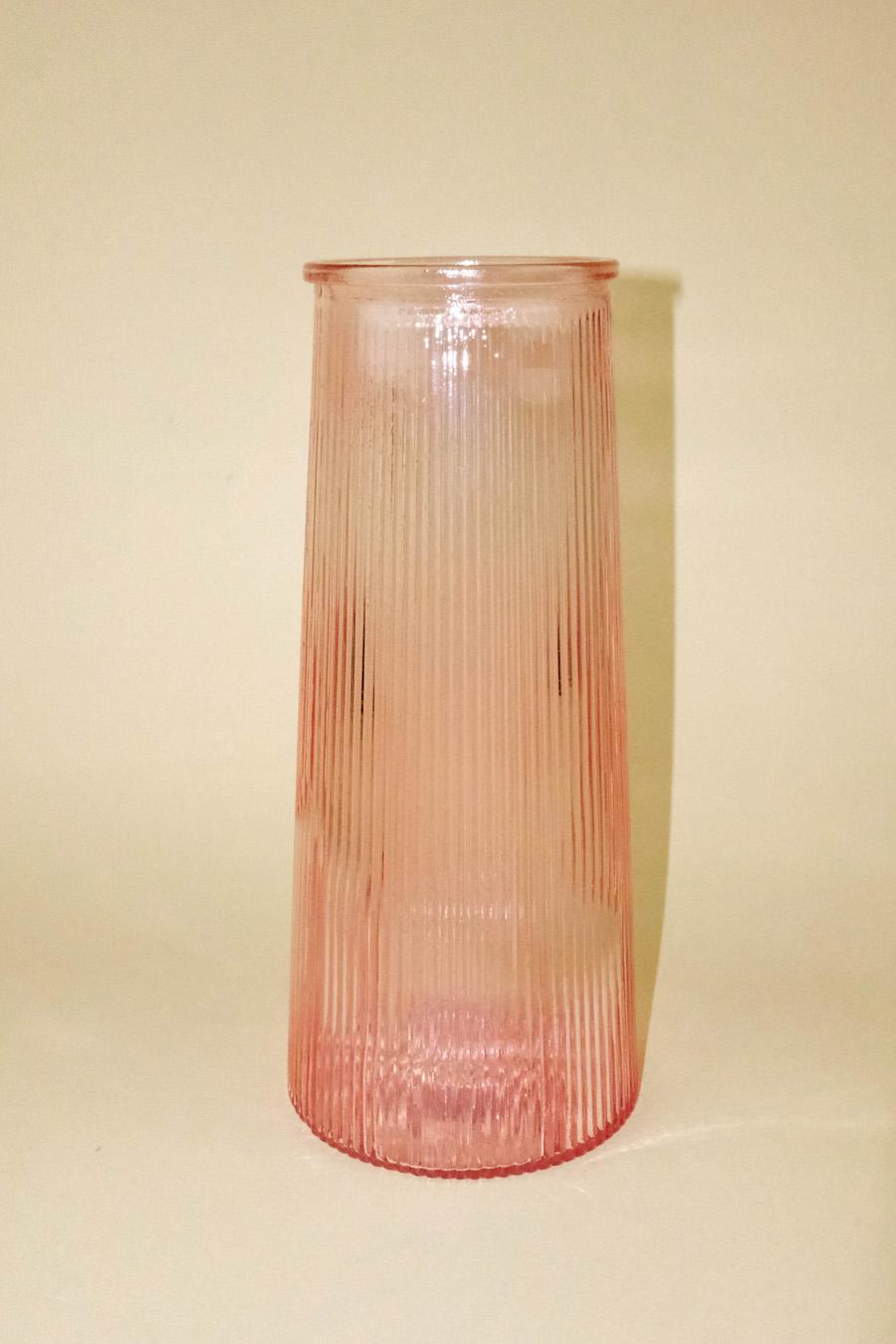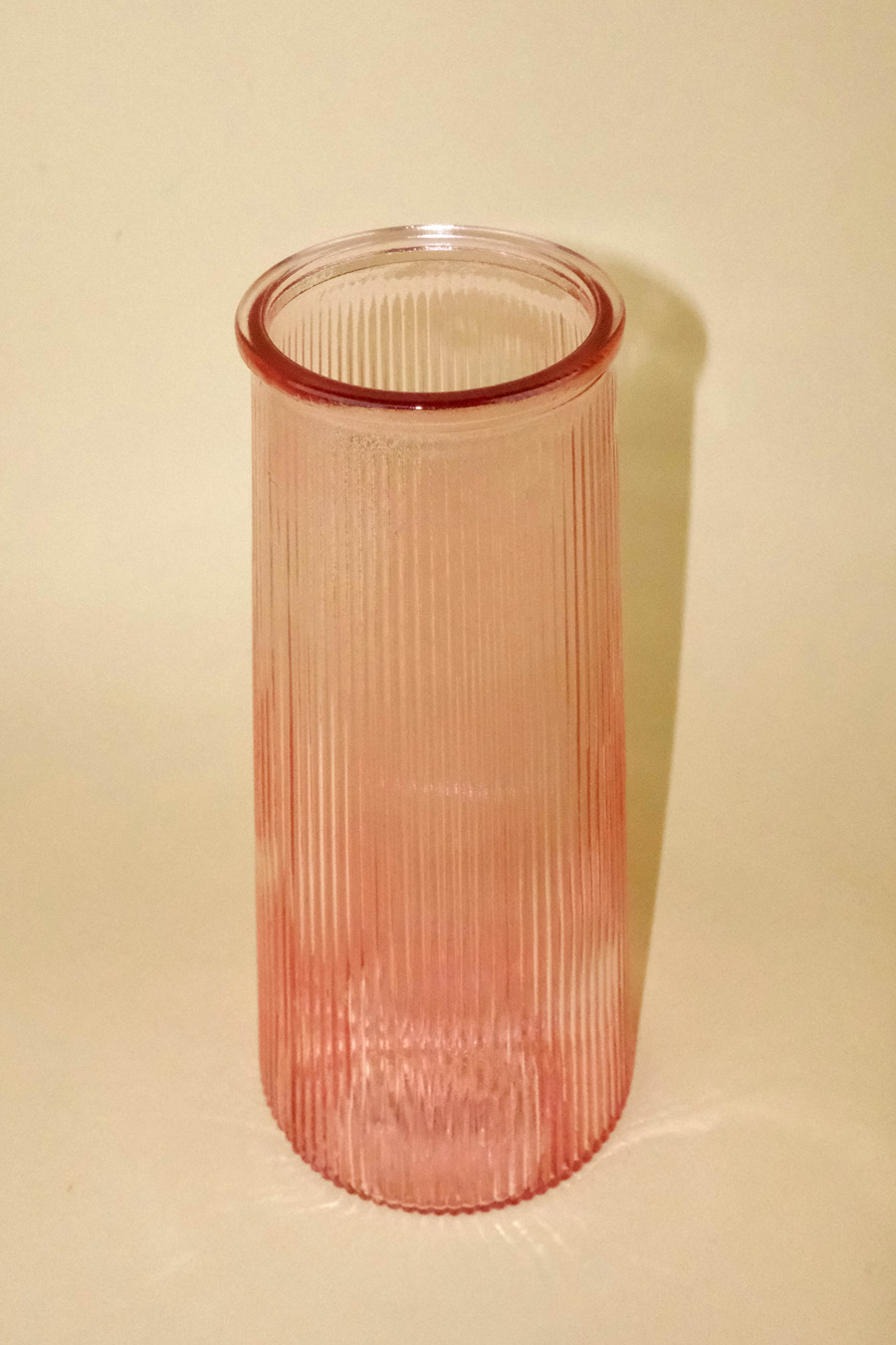 Skleněná váza s proužkem růžovo - oranžová 20 cm