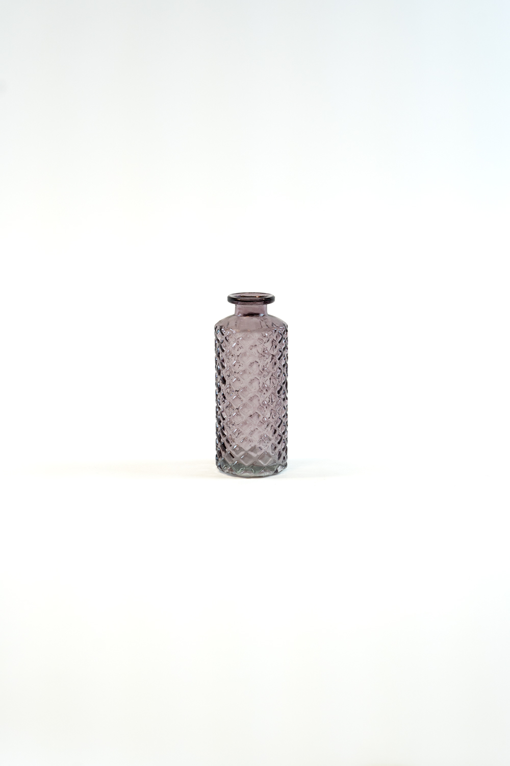 Skleněná vázička lila úzká 13 cm - kosočtverce