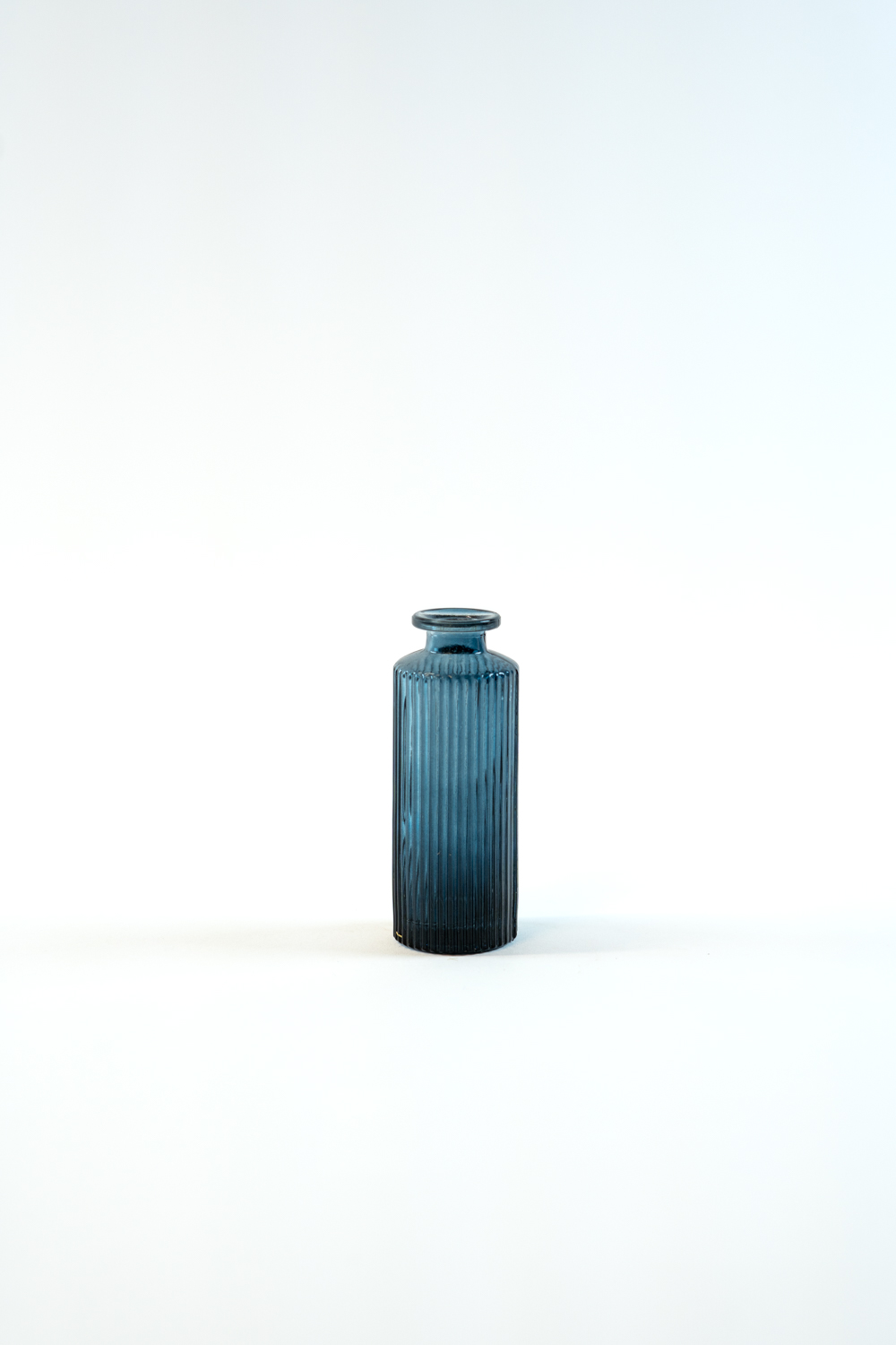 Skleněná vázička modrá 13 cm - proužek/vroubek