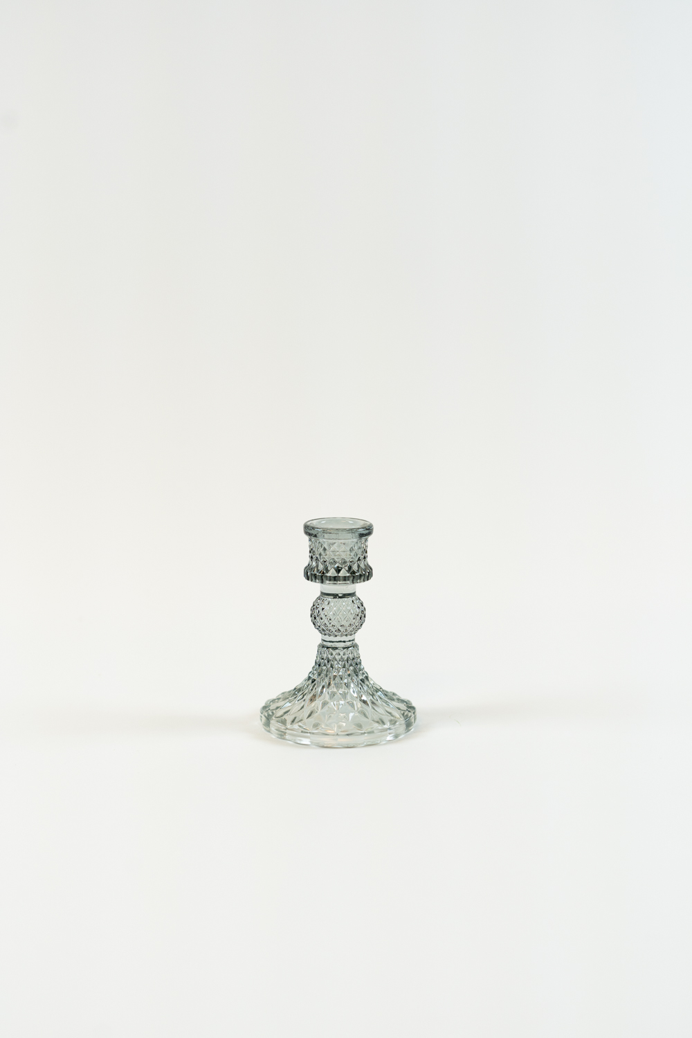 Skleněný svícen na kónickou svíčku šedý - 10 cm