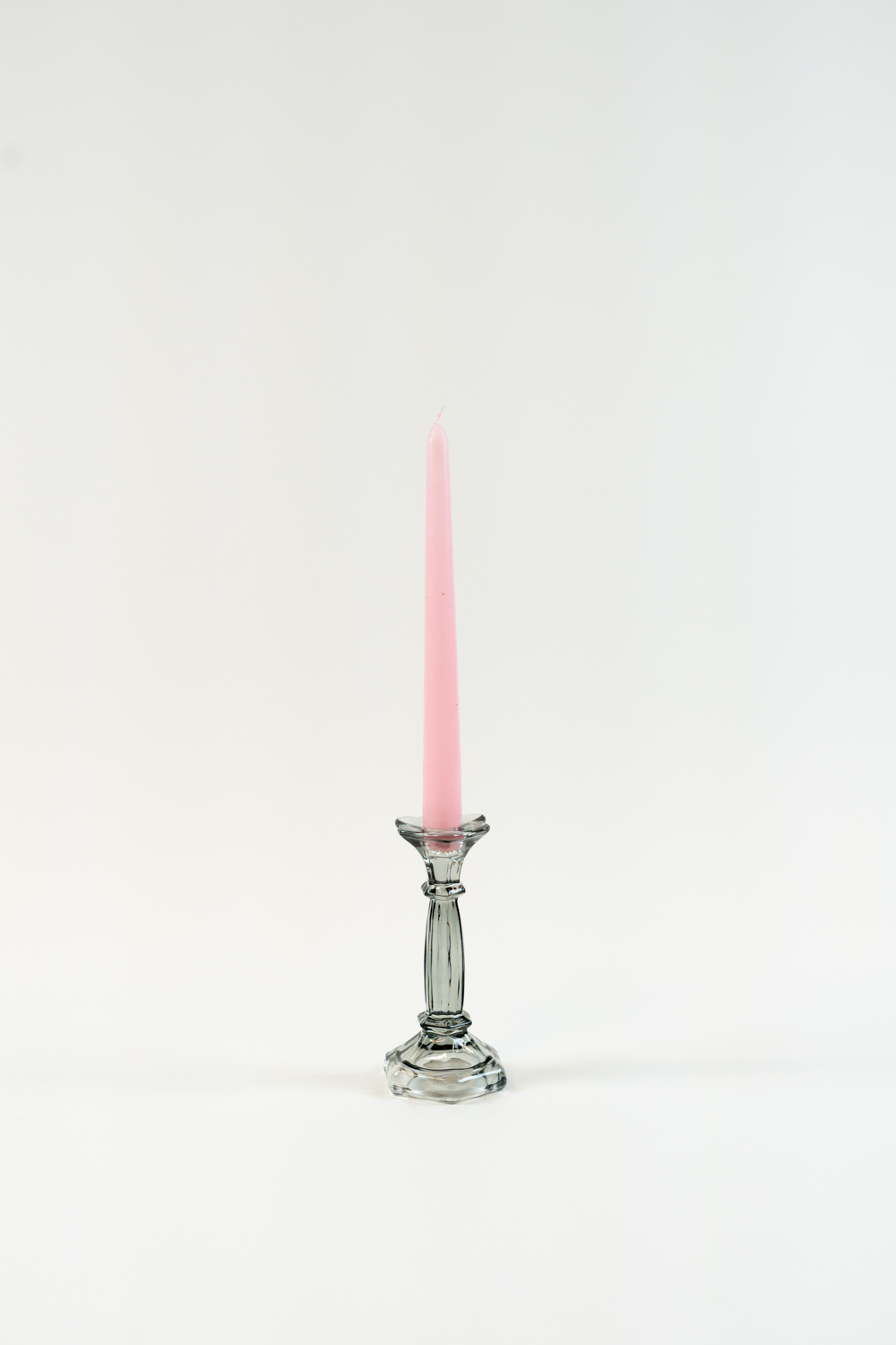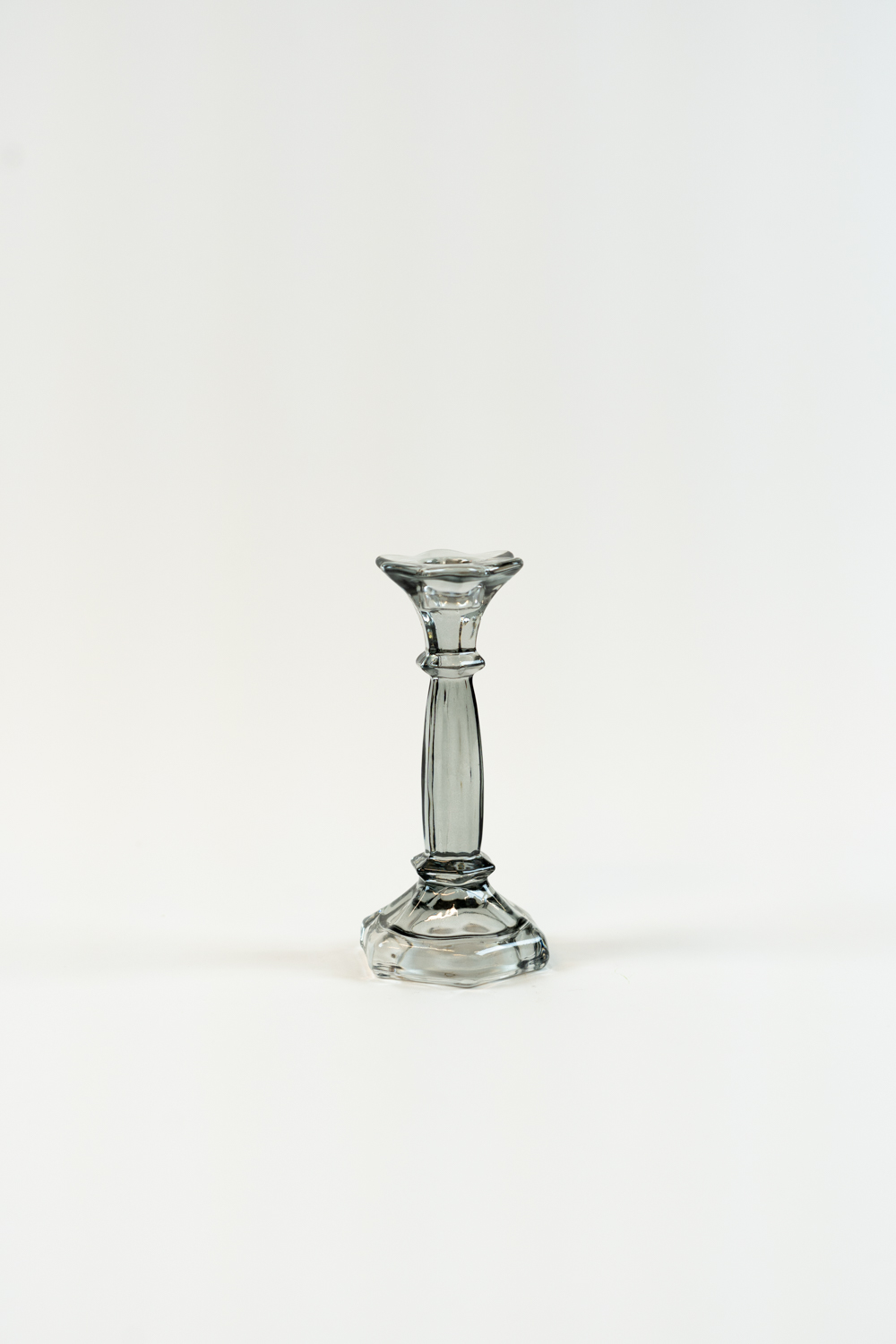 Skleněný svícen na kónickou svíčku - šedý 16 cm