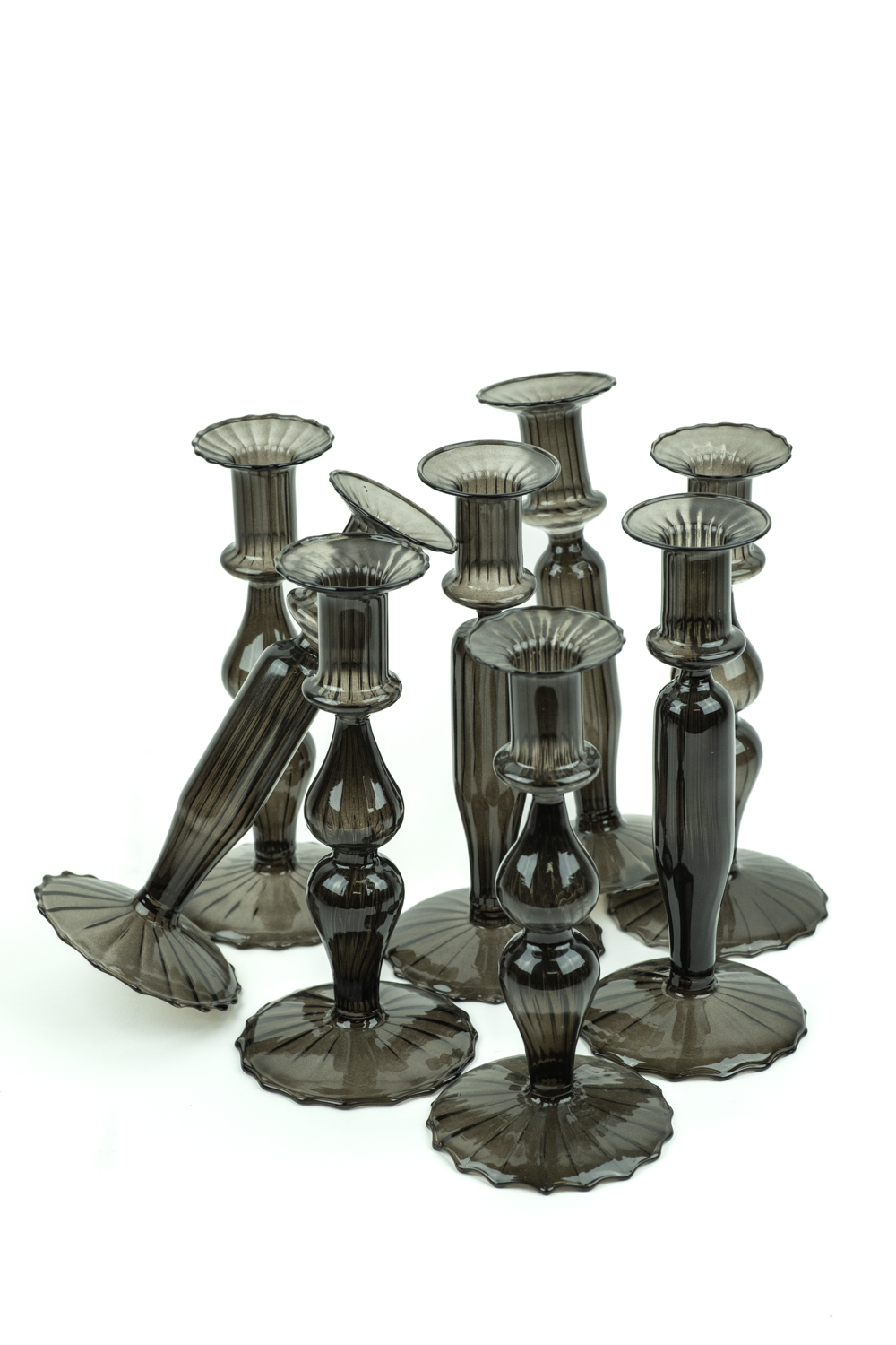 Skleněné svíceny černé na kónickou svíčku- 20/20,5 cm sada 8 ks