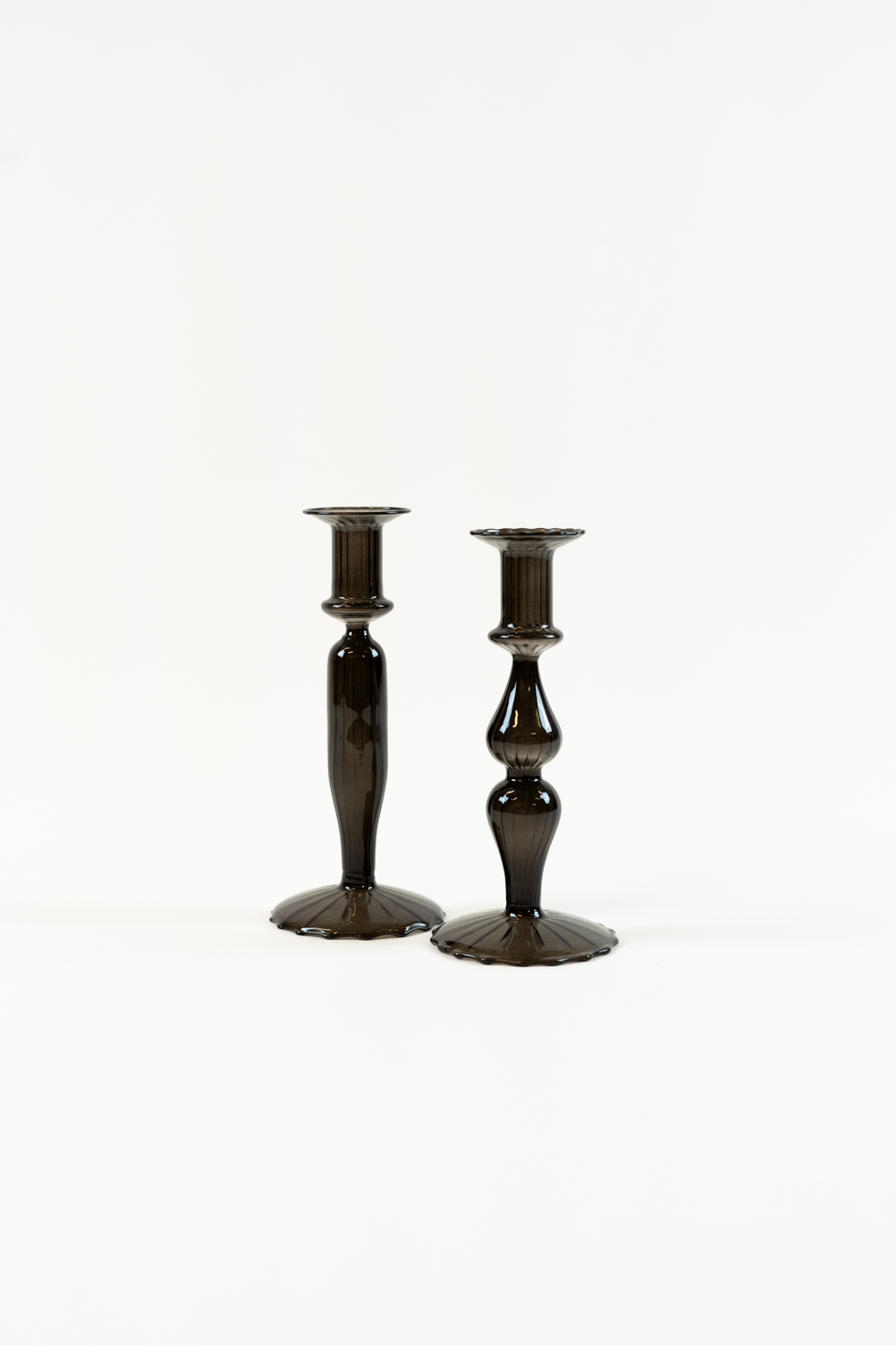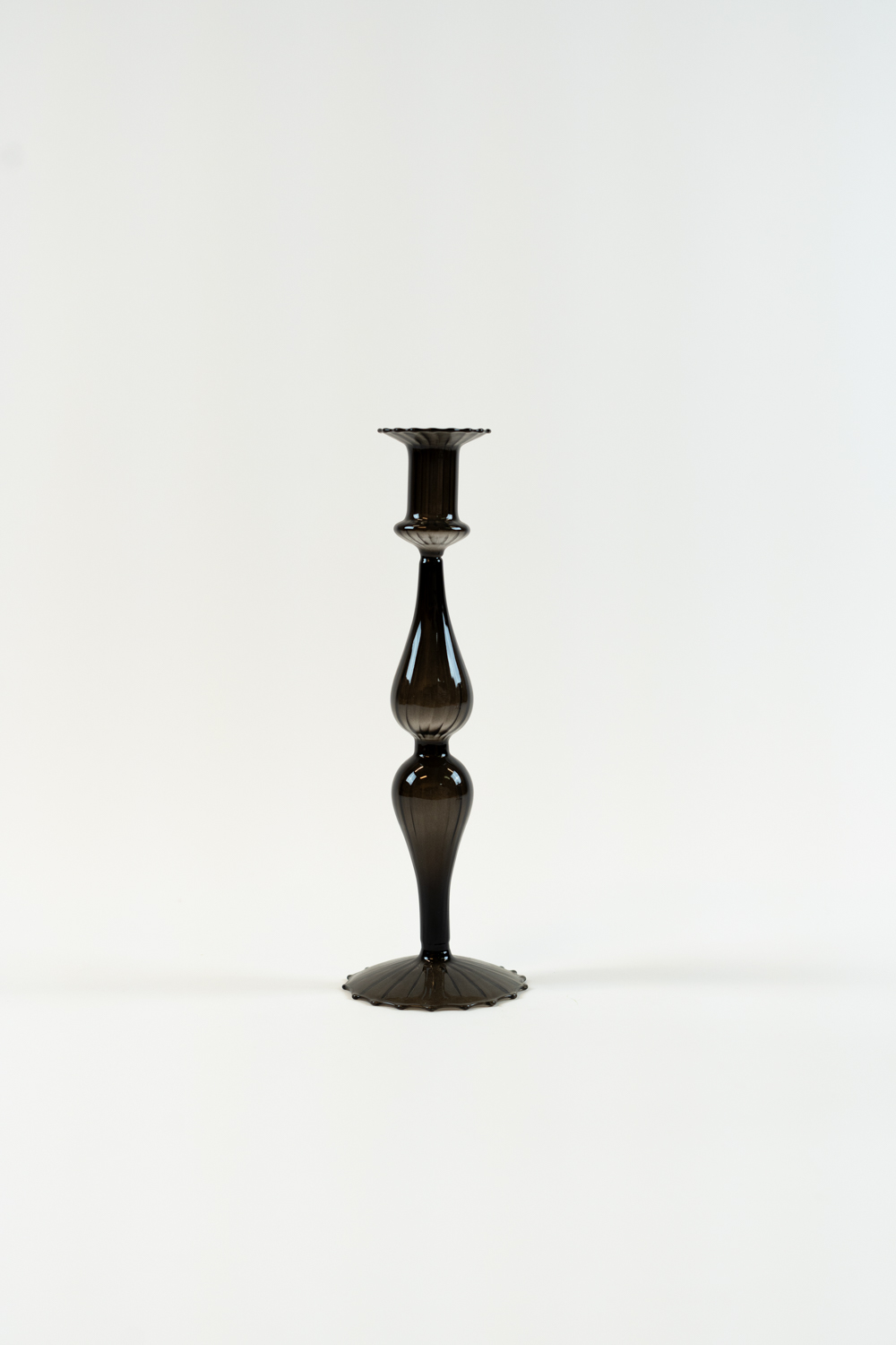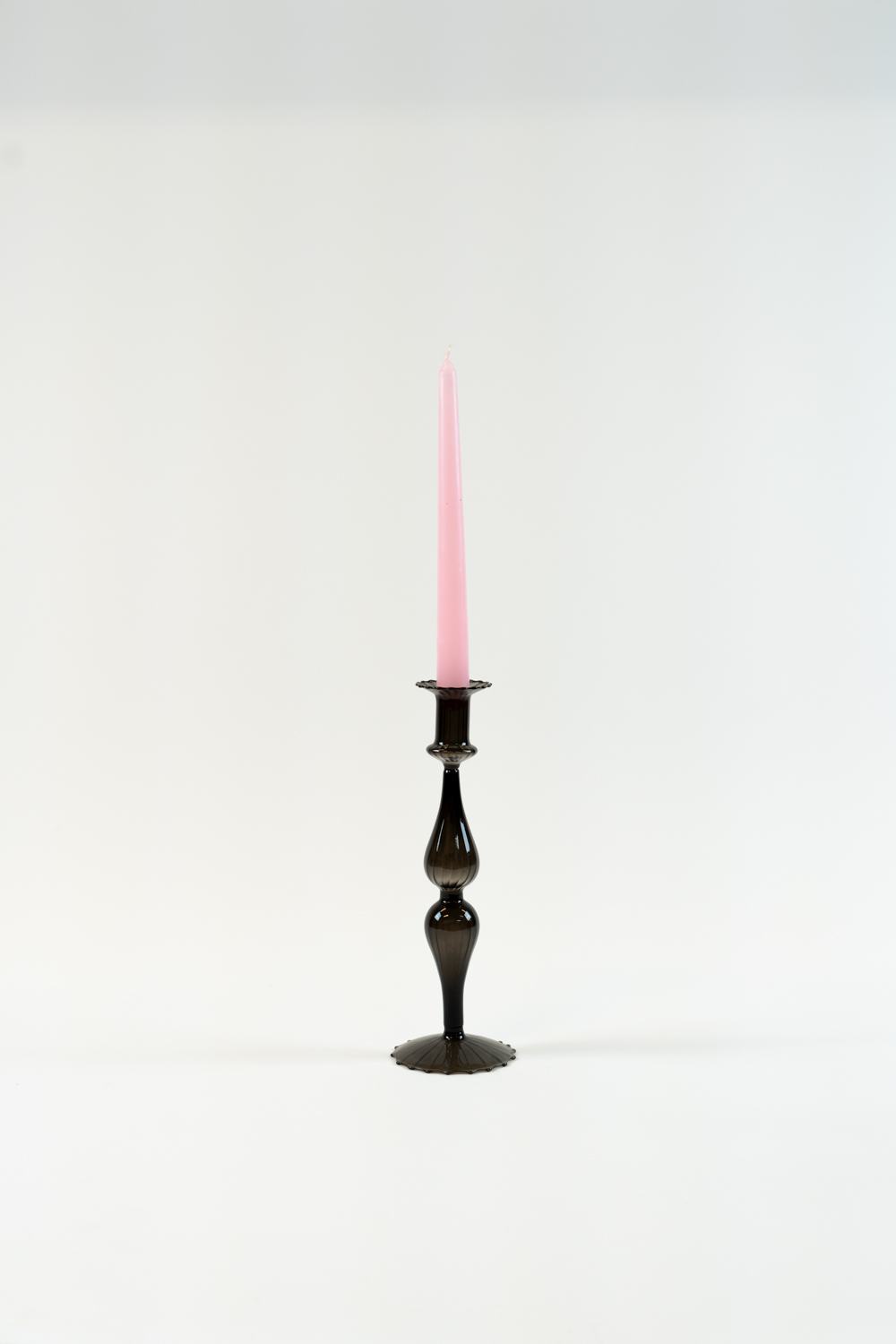 Skleněný svícen na kónickou svíčku - černo-šedý - 27,2 cm