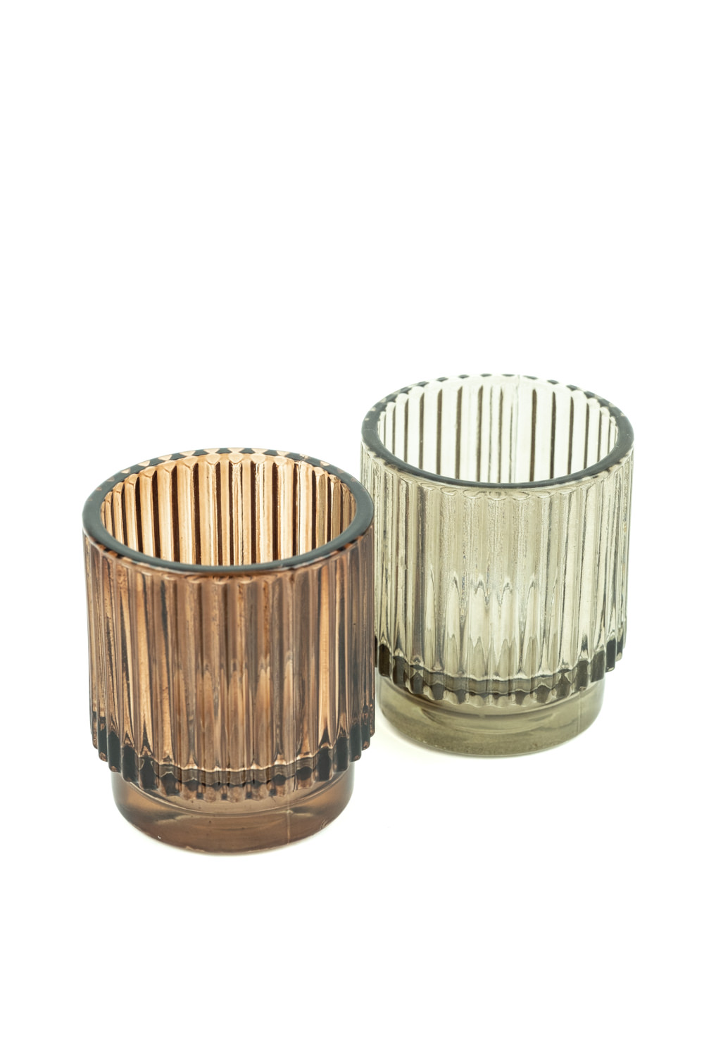 Skleněný svícen na čajovou svíčku hnědý - 8 cm